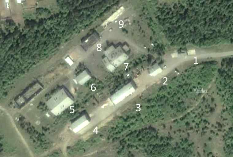 Имеется канализационная система к каждому зданию, магистрали электрики и отопления, электрическая подстанция (отключена).
