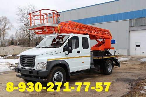 Одним из направлений деятельности компании является продажа Газонов с автогидроподъемником для осуществления ремонтно-монтажных работ на высоте. У нас можно заказать и купить газель автовышку с высотой подъема до 24м, а при необходимости перевозки большой бригады имеет смысл купить автовышку на базе Газона с двухрядной кабиной. Данная модель автогидроподъемника имеет телескопический тип стрелы и оснащена люлькой с грузоподъемностью 240 кг, площадь люльки, м2 1±0,1, а максимальное количество людей в люльке 2 человека. Управление автогидроподъемником может быть осуществлено как оператором с земли, так и при помощи пульта управления из люльки.