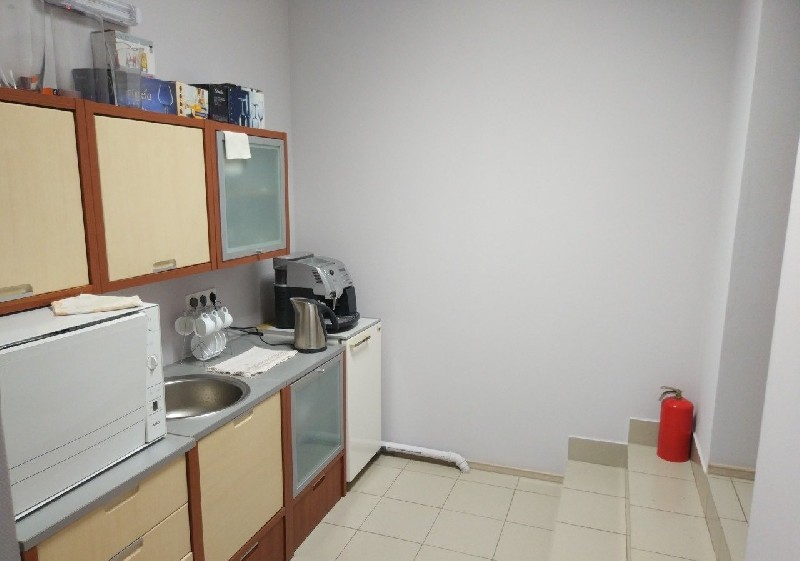 В здание площадью 111,8 кв.м расположены 5 небольших офисных помещений (2-3 рабочих места), туалет, помещение для приёма пищи, помещение, которое можно использовать под кассу, либо архив.