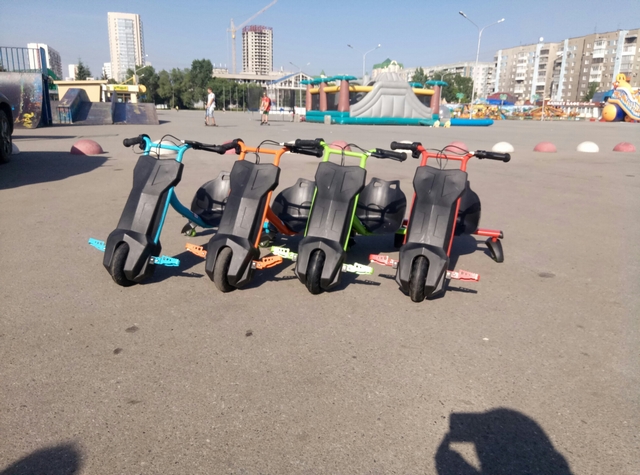 Электроскутер NEWPOWER DRIFT 360, достаточно просто нажать кнопку газа, и вот вы уже мчитесь на скорости до 15 км/час, выполняя при этом крутые развороты на 360 градусов, проносясь в управляемом заносе, благодаря паре задних специальных роликовых колёс.
