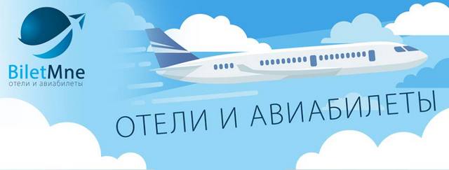 Удобный сервис бронирования отелей и авиабилетов Biletmne. Надежное и быстрое бронирование. Возможность сравнить и выбрать лучший вариант. Удобный поисковик, большой выбор отелей, все авиакомпании мира, скидки и акции. Ждем вас в наших группах: Одноклассники, Facebook - biletmne, а также ищите нас ВКонтакте - biletmneru, а также на нашем сайте.