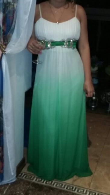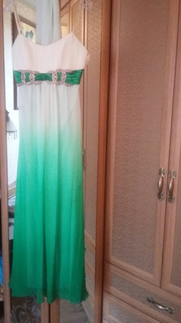 Платье вечернее бело-зеленое , шифон , размер 46 с палантином .и украшеним со стразами . В идеальном состоянии .(Цена -5000 р.)