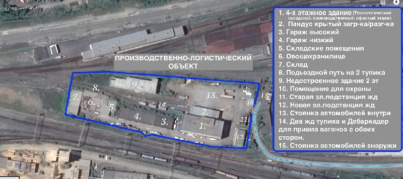Описание - Территория и помещение последние годы использовались производственно – торговым предприятием с собственной логистической службой, обслуживающей всю Челябинскую область и соседние крупные города (Екатеринбург, Магнитогорск, Курган, Уфа. Пермь ….). Территория охвачена ж/д путями, посторонним и случайным лицам попасть тяжело, огорожена забором по периметру и оборудована колючей проволокой;