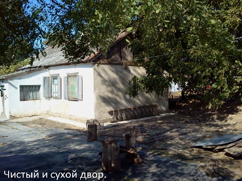 В станице Новоджерелиевской Брюховецкого района Краснодарского края - Продается ухоженное подворье со старым домиком (1959 года постройки, общей площадью 42 кв.м. удобства на улице.) Площадь участка 7,0 соток, фасад 29 метров, находится на самом высоком месте станицы. Подворье полностью огорожено, с трех сторон новым забором. На участке есть фруктовые деревья и виноград. Есть колодец для полива огорода. Растут два больших грецких ореха. Конечно же есть цветы – ландыши, лилии, пионы, которые расцветают по очереди. Почти нет комаров и мух. Построен новый дровяник и санузел (душ, туалет, умывальник) с электроподогревом воды и воздуха, купаться можно до морозов. Есть отдельно стоящий погреб и летняя кухня с печным отоплением, но места под строительство нового дома хватит. Старый дом еще добротный(ресурс саманного дома более ста лет.) - теплый зимой и прохладный летом, внутри русская печка, греет хорошо, есть запас дров (колотых) на зиму. Газ проходит по улице, вода во дворе, свет в доме. Еще, обратите внимание - на подворье остается все необходимое для проживания и ведения домашнего хозяйства (но не принципиально) можно все вывезти. Косметический ремонт надо будет делать. Документы на дом и участок новые, возможно скидки на ремонт. Подворье поддерживаем в порядке. Немного о станице - чистая, ухоженная, вся заасфальтированная, газифицированная и освещена. Новый водопровод, школы и детсады, дворец спорта, крытый плавательный бассейн. Соседи по кругу - замечательные. В станице есть церковь, универсамы – Магнит и Пятерочка, аптеки, поликлиника и больница, стадион, крупнейший в крае Агрокомплекс и рыбная река Кирпили. Станица находится в 25 километрах от районного центра Брюховецкая, до крупного промышленного города и узловой станции Тимашевск, то же 25 км. До города курорта Приморско – Ахтарска, всего лишь 45 км. до Краснодара 90 километров, до Анапы 190 км. Во все направления хорошие асфальтированные дороги. Прямое автобусное сообщение с городами курортами – Анапа, Новороссийск, Геленджик, Приморско-Ахтарск, Туапсе и Сочи. С городами края – Краснодар (10 рейсов в сутки), Лабинск, Армавир, Славянск. Численность населения в станице 6000 человек. На пути к курорту Приморско-Ахтарск это самая выгодная станица во всех отношениях. Торг / Обмен. Материнский капитал не предлагать.