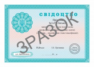 Выдается СВИДЕТЕЛЬСТВО с присвоением квалификации и разряда согласно Лицензии Минобразования Украины.