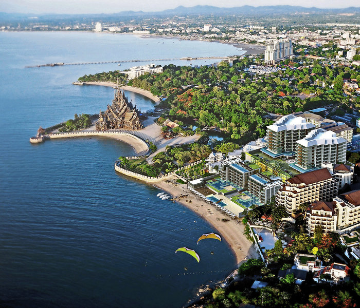 Отель расположен в северной части Паттайи, на берегу моря, на уединенном пляже Crescent Moon Beach, рядом с храмом the Sanctuary of Truth (Храм Истины).