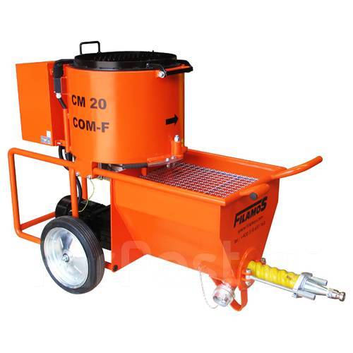 Мешальная ёмкость заполняется сухим материалом с добавлением требуемого количества воды. Готовая смесь после этого заполняет рабочую ёмкость насоса через выпускное отверстие на дне мешального бассейна.