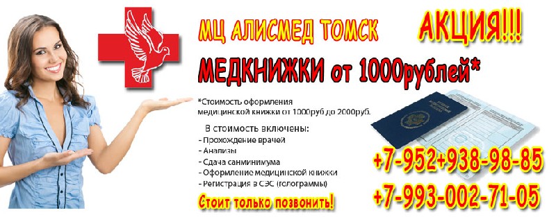 Наш медицинский центр «АлисМед» оформляет санкнижка в Томске.