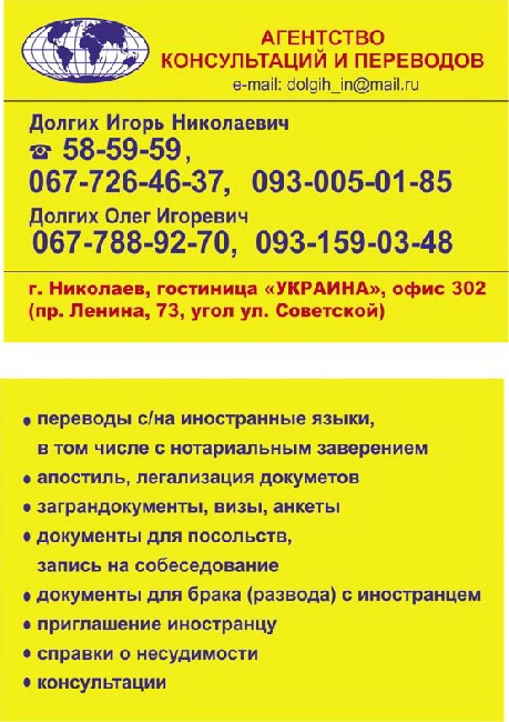 54000, Украина, Николаевская обл., г. Николаев, пр. Центральный, 73,