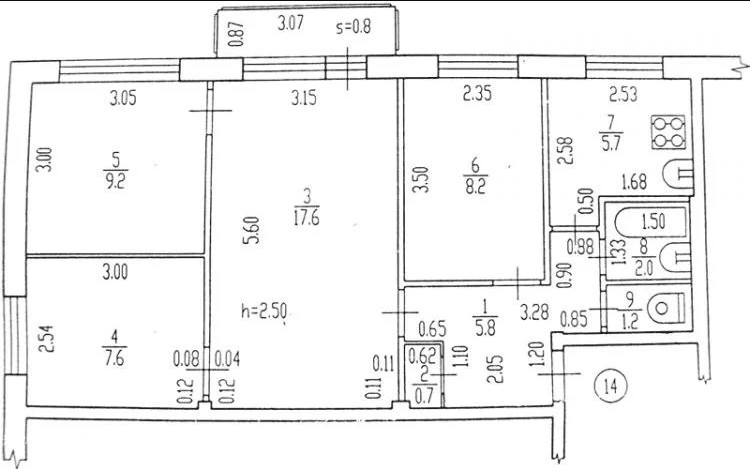 Состояние - заезжай, живи, делай под себя. Ремонт старый, но посмотрите на цену: за отделку платить не придётся. Квартира тёплая, протечек нет и не было. Площадь - 58.1 кв.м.