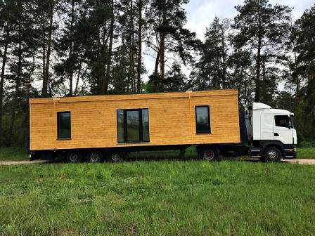 Размер дома на фото - 3,4 * 12,5 * 3,2 м. Вес: 10 тонн.