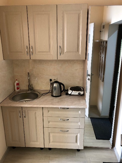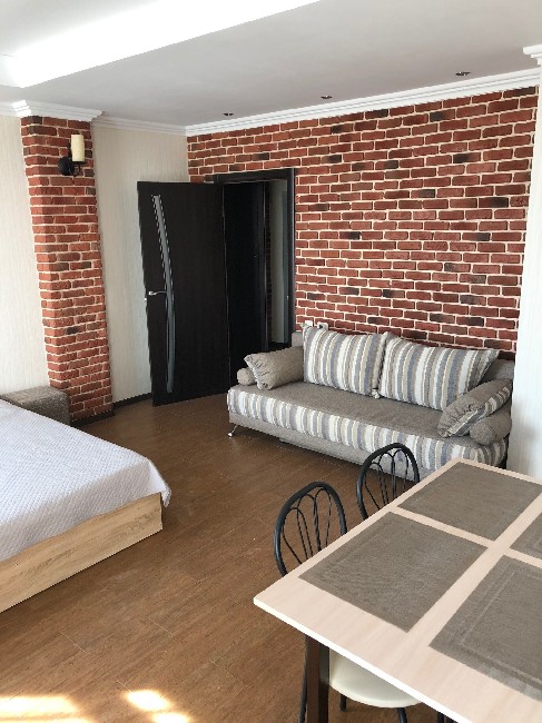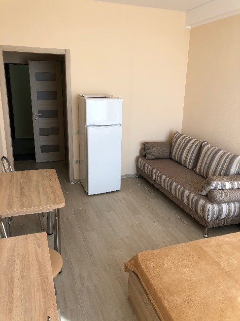 Все удобства: мебель, 4 спальных места - двухспальная кровать и раскладной диван, кондиционер, телевизор, интернет, постельное белье, полотенца, кухня для самостоятельного приготовления пищи, электроплита, электрочайник, вся необходимая посуда, холодильник, санузел оборудован душевой кабиной, унитазом, умывальником, бойлером, стиральной машиной, круглосуточное водоснабжение. Территория комплекса закрытая и охраняемая. На территории имеется 2 бассейна-детский и взрослый, ресторан, парковка, детская площадка, место для мангала.Выйти на пляж можно прямо с комплекса, между пляжем и комплексом строений нет, до моря 5 минут ходьбы, пляж большой песчаный и немноголюдный, так как на нем как правило отдыхают гости с Променада. Рядом расположены магазины, аптеки, кафе, рынок. Также вблизи находится крупнейший в Украине аквапарк.