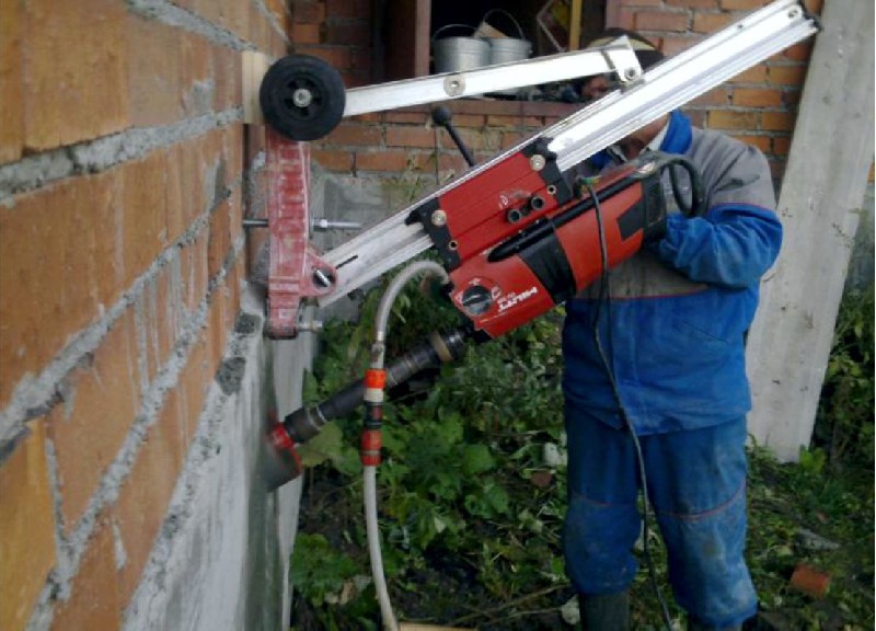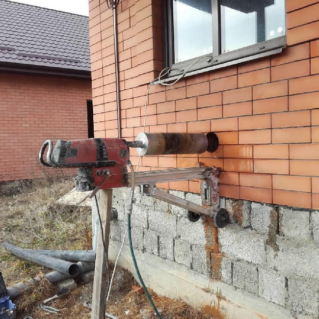 - Выполнение алмазного сверления под углом, а также вертикальное бурение отверстий в полу, горизонтальное бурение стен на высоте, сверление отдушин, отверстий под вентиляционные клапаны, керновое бурение в строительстве, глубокое бурение - до 3 метров.