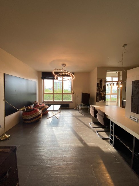Планировка квартиры: просторная кухня-гостиная с выходом на уютный балкон, гардеробной комната , спальня, кабинет, совмещенный санузел.