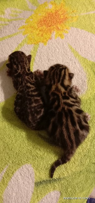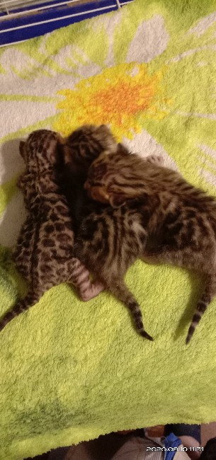 Нашим бенгальским детишкам которые родились 5 августа мы потихоньку начинаем искать любящих и самых лучших мам и пап. Родители деток папа KIM и мама HANI дали своим деткам только самое лучшее от племяной пары . Итак ; Питомник IZ DOMA BARANIKHINOFF предлагает к продаже бенгальских котят ;5 красоток -девочкек два парня богатыря окраса n24 На момент продажи будут иметь все необходимые по возрасту прививки и документы . Хвостатые продаются как в любимцы так и в разведение . Цены разные Территориально находимся г.Аша Челябинская обл Доставка в любую точку мира . Все интересующие вопросы запрос на фото и видео можно задать по телефону или WhatsApp