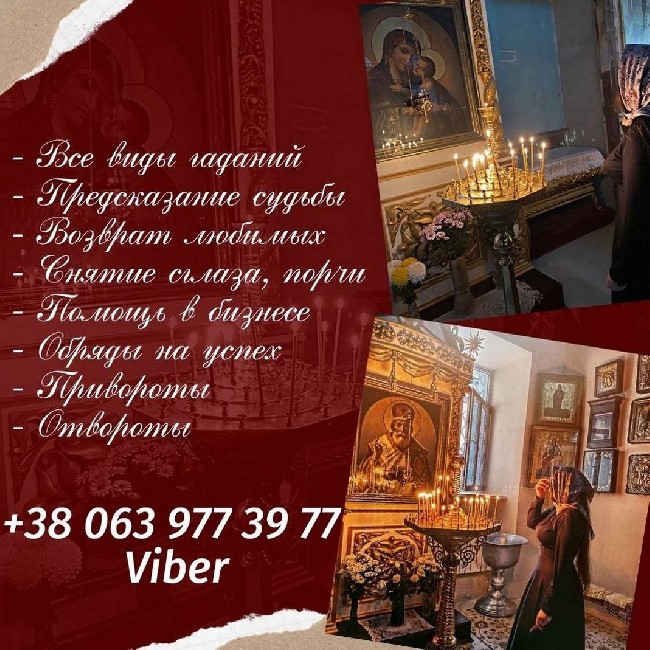 - снятие порчи, сглазов, венца безбрачия;