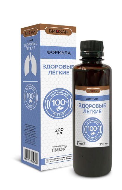 Благодаря входящим в состав натуральным растительным компонентам продукт обладает отхаркивающим, противомикробным, противовоспалительным и потогонным действием, способствует регенерации поврежденного эпителия бронхов, усиливает секрецию бронхиальной слизи и улучшает деятельность бронхолегочной системы в целом. ФОРМУЛА «ЗДОРОВЫЕ ЛЕГКИЕ» рекомендуется для профилактики и комплексного лечения хронических бронхитов. Высокая биологическая активность компонентов позволяет уменьшить кашель и першение в горле при различных заболеваниях, нормализовать работу дыхательной системы и восстановить функцию бронхиального дерева, повышает общую сопротивляемость организма в противоборстве с вирусными и бактериальными инфекциями дыхательных путей, приводит в норму процессы обмена в легких, предотвращает воспаление, уменьшает болевые ощущения и спазмы бронхиальной мускулатуры и ускоряет выздоровление организма естественным путем при заболеваниях дыхательных путей.Рекомендуется использовать для устранения симптомов патологических нарушений и нормализации функций дыхательной системы. Благодаря комплексу растительных компонентов продукт эффективен при бронхите (острая и хроническая форма), трахеобронхите, бронхиальной астме, острых вирусных и бактериальных заболеваниях (ОРВИ, ОРЗ, грипп, пневмония и другие), увеличении степени аллергизации организма, стойком снижении работоспособности, выраженном ослаблении иммунитета и упадке сил после перенесенных вирусных и бактериальных заболеваний.Способ применения: 1 столовую ложку сиропа (15 мл) запить стаканом тёплой воды (100 мл). Принимать 3 раза в день. Курс 10-20 дней. Для улучшения эффективности курс рекомендуется повторять несколько раз в год.Состав: фруктозный сироп, солодки голой экстракт, плодов малины обыкновенной экстракт, чаги экстракт, шиповника экстракт, эхинацеи экстракт, исландского мха экстракт, девясила высокого экстракт, мать и мачехи экстракт, дигидрокверцетин, мяты перечной экстракт, плюща экстракт, подорожника большого листа экстракт, ромашки аптечной экстракт, шалфея лекарственного экстракт, эвкалипта листьев экстракт, куркумин, бузины черной экстракт, почек сосны обыкновенной экстракт, чабреца обыкновенного экстракт, белой шелковицы корня экстракт, аира болотного экстракт, алтея лекарственного экстракт, аниса обыкновенного экстракт, коры магнолии экстракт, коры ивы белой экстракт, липы сердцевидной экстракт, периллы кустарниковой листа экстракт, пинеллии тройчатой экстракт, сушеницы топяной экстракт, фиалки трехцветной экстракт, донника лекарственного экстракт.