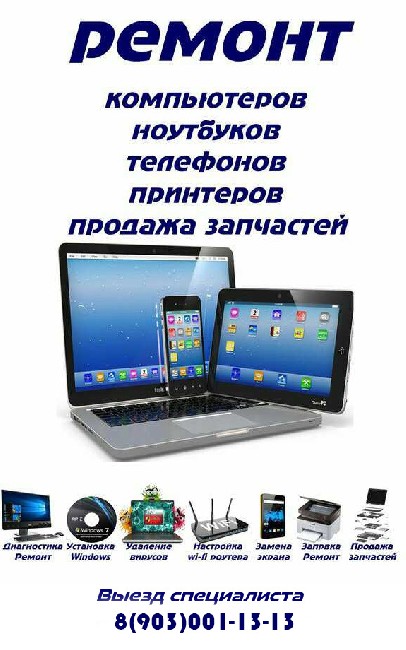 Ремонт: компьютеров, ноутбуков, планшетов, смартфонов, принтеров, телевизоров