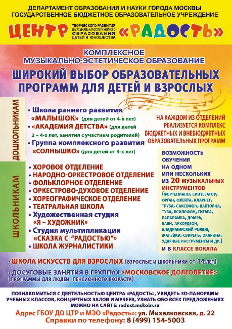 Официальный сайт центра https: //radost. mskobr. ru/afisha