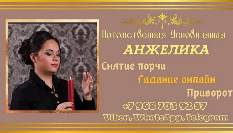 Потомственная ясновидящая Анжелика Вишневская помогает людям в разных жизненных ситуациях. Работает с трудными и неотложными ситуациями.