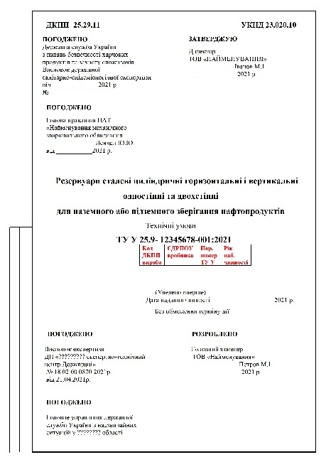 - розробки та реєстрації технічних умов;