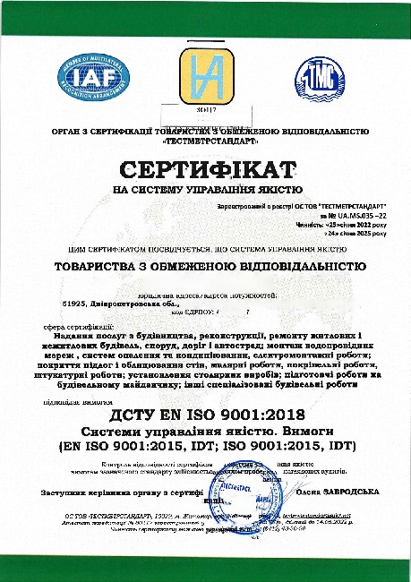 - сертифікати ISO 9001; 14001; 45001; 28000; 37001 та інші;