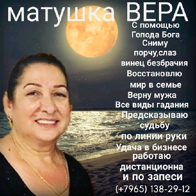 Если у вас беда, вы запутались на жизненном пути, обращайтесь — Матушка Вера с большим практическим опытом 45 лет поможет вам, её многолетний опыт поможет Вам выбраться с любой сложной ситуации!
