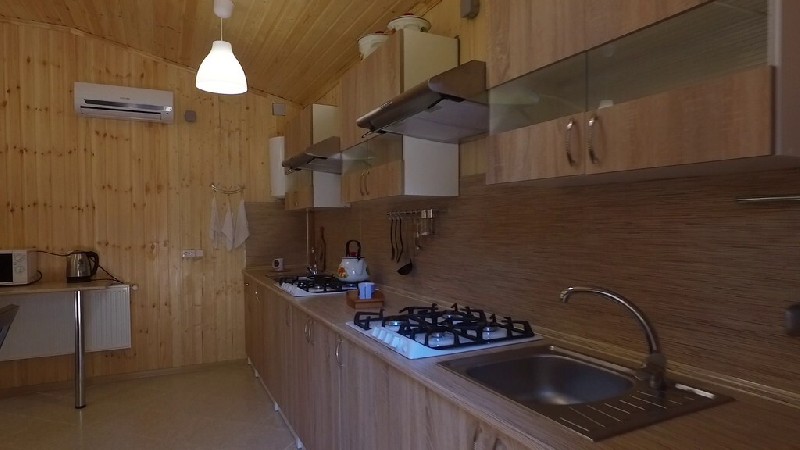 Приготовить еду вы сможете на общей кухне, либо мангальной зоне. Недалеко от базы есть магазин, но продукты лучше привезти с собой.