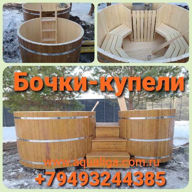 Компания "Аквалига" предлагает бани-бочки. Различные варианты исполнения: круглая, квадро, овал. Размеры от 2 до 6м. Много доп. опций по вашему желанию.
