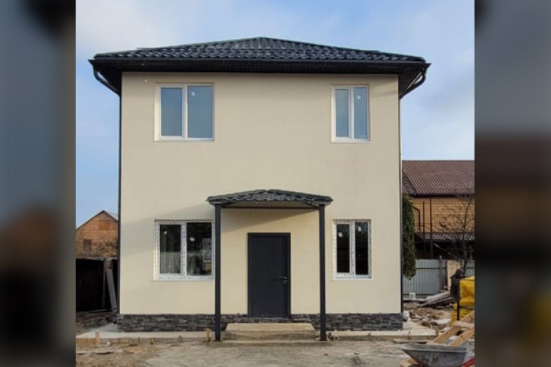 - Эстетический фасад: Отделка фасадной штукатуркой "кароед" в цвете слоновая кость.