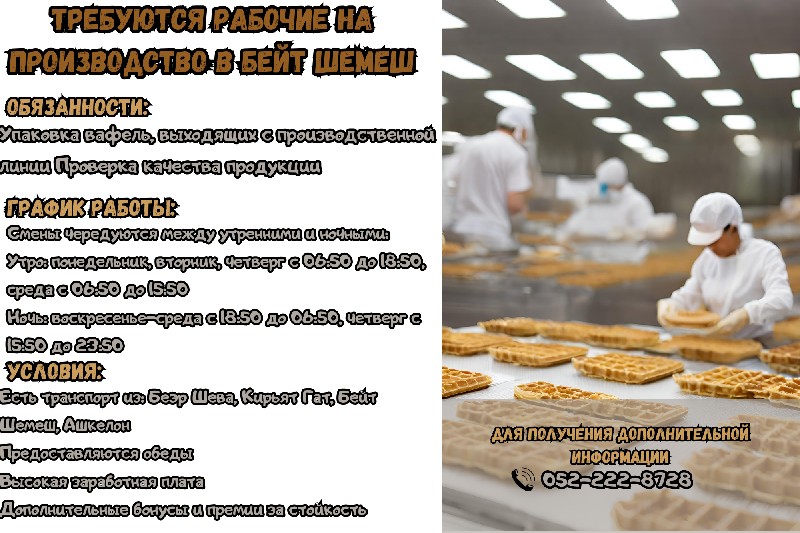👨🏭🔧 ТРЕБУЮТСЯ РАБОЧИЕ НА ПРОИЗВОДСТВО В БЕЙТ ШЕМЕШ! 🔧👩🏭