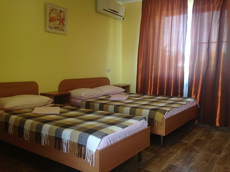 Для гостей приготовлены комфортабельные номера 4хместные и 3хместные. В номерах есть кондиционер, спутниковое ТВ, холодильник, душ и туалет. Уборка в номере и смена белья и полотенец через 5 дней. Есть гладильная + утюг, прачечная (платно — 100 руб. / стирка)