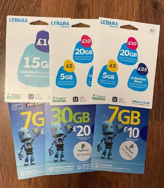 В наявності англійські оператор Lebara, О2, Three, Vodafone.