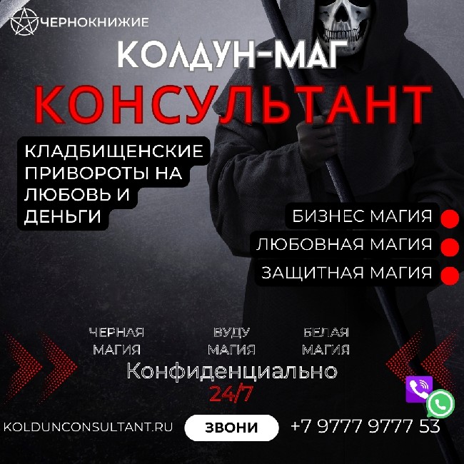Вы устали от бесполезных стараний возвратить обратно любимого человека? Вы устали надеяться, пока объект вашей любви, наконец, обратит на вас внимание? Время для игр и бесполезных ритуалов прошло. Я — Колдун Консультант, мастер тёмных искусств, готов помочь вам сделать самое сильное и неотразимое чернокнижное воздействие — Погостный приворот.