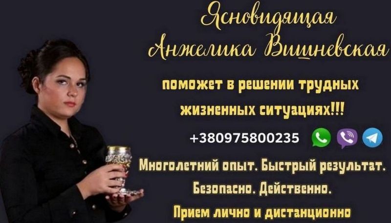 Спадкова провісниця, ясновидиця в 10 поколінні, з давнього роду Дошкещі Анжеліка Вишневська допоможе у вирішенні важких життєвих ситуаціях!!!