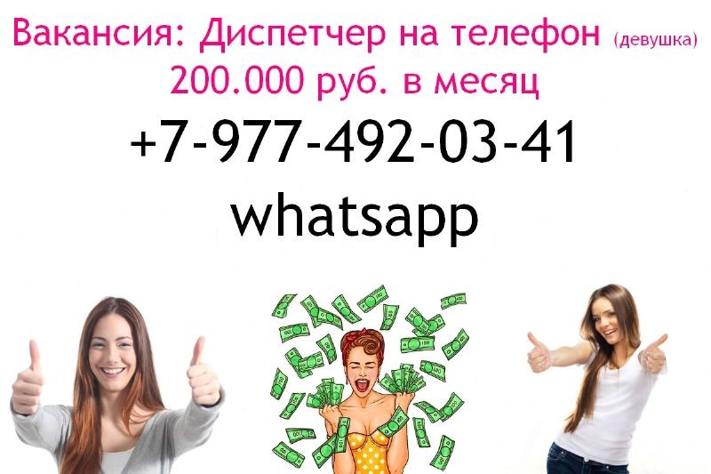 Требуется для работы на нашей территории - девушка диспетчер (на телефон). Москва. График работы 1/2. Стабильная з/п - 200 тысяч руб. в месяц. Пишите в ватсап.