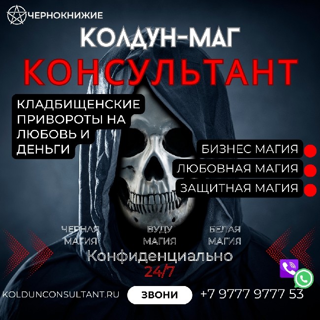 Вы устали от бесплодных стараний возвратить любовь? Вам надоело дожидаться, пока объект вашей слабости, наконец, обратит на вас свой взор? Время для игр и бесполезных ритуалов прошло. Я — Колдун Консультант, мастер черных искусств, готов помочь вам реализовать самое сильнейшее и неизбежное магическое воздействие — Кладбищенский приворот.