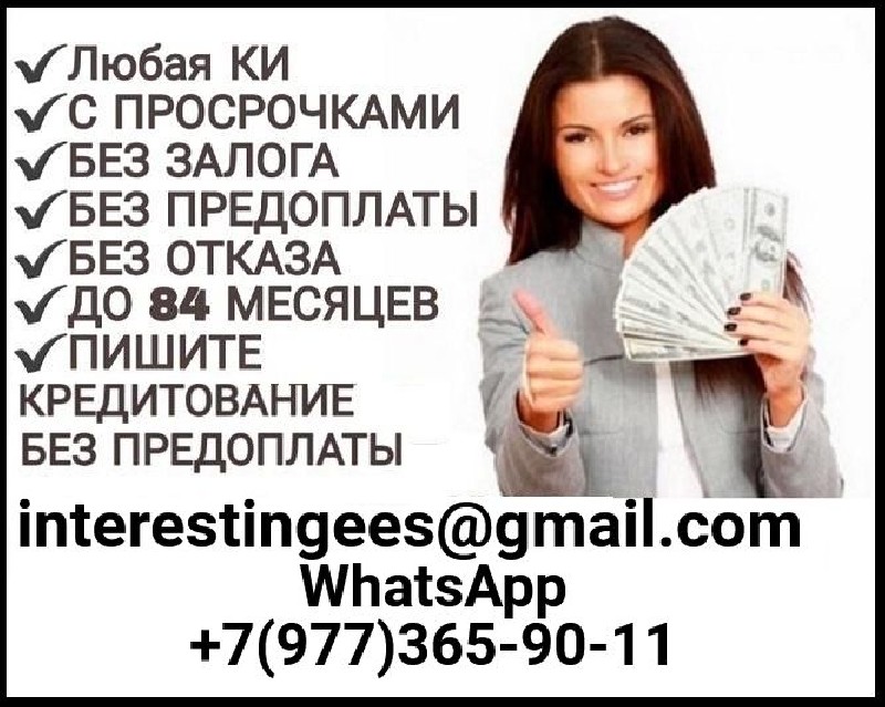 Кредит без каких-либо вложений. Доступный лимит до 5 млн. рублей в одни руки. Нужен только паспорт и любой второй документ. Кредитная история не имеет значения. Никаких платных услуг и прочих взносов. Низкий годовой процент. Помогаем с получением кредита даже если нет официального трудоустройства и испорчена кредитная история. Справок не запрашиваем. Получение кредита в удобном для Вас регионе с подписанием всех необходимых документов. Подать заявку вы можете прямо сейчас, написав на эл. почту interestingees@gmail. com или WhatsApp +7(977)365-90-11