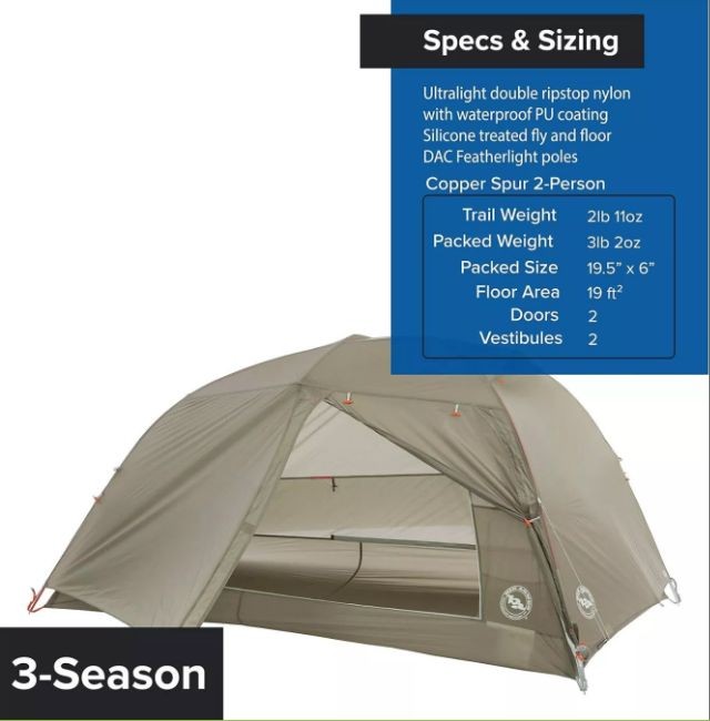 топовая палатка Big Agnes Copper Spur HV Ul2. походный вес 1,22 кг.
