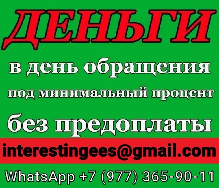 Кредит в регионе вашего проживания. Без отказа и вложений, с подписанием всех необходимых документов. Консультация наших специалистов бесплатна. Берёмся даже за самые сложные и, казалось бы, безвыходные ситуации. Даже если ваша кредитная история не идеальна или имеются просрочки и многочисленные отказы, мы гарантируем вам получение необходимой суммы. Мы ценим каждого клиента! Помогаем не официально трудоустроенным без подтверждения дохода. Предоставляем гарантии, которые другие предоставить не могут. Полную информацию предоставим по запросу на эл. почту interestingees@gmail. com или WhatsApp +7 (977) 365-90-11