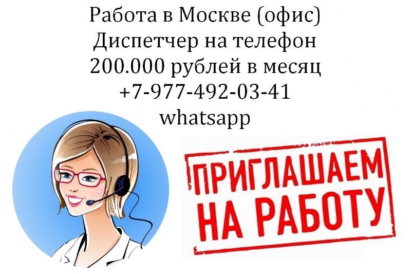 В наш Московский офис срочно требуется девушка-диспетчер (оператор) на телефон, отвечать на входящие звонки. Предлагаем гибкий график и высокую оплату 200 тысяч руб в месяц. Звоните или пишите в whatsapp.