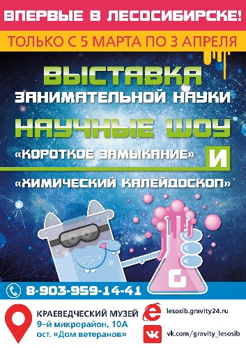 Спешим сообщить, что с 5 марта по 3 апреля в Краеведческом музее запускается уникальная научная выставка от Красноярского центра «Гравитация»!