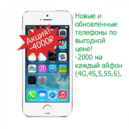 Акция на обновленные айфоны (4g,4s,5,5s,6) мы предоставляем клиентам гарантию 2 недели на заводской брак и 1 год на техническое обслуживание. перед тем как продать телефон мы его тщательно проверяем!!!