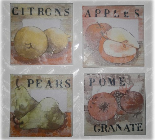 Предлагаем плитку из Германии Jasba Village для оформления пола, стен и фартука в кухне. На плитке имеются рисунки фруктов с надписями. Формат настенной плитки 31,6x31,6 а напольной 31,2x20,7.