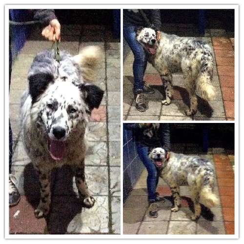 Он большой, пушистый и упитанный метис далматинца; Роскошный белый мех с черными пятнышками и чёрные с голубым фрагментом глаза.