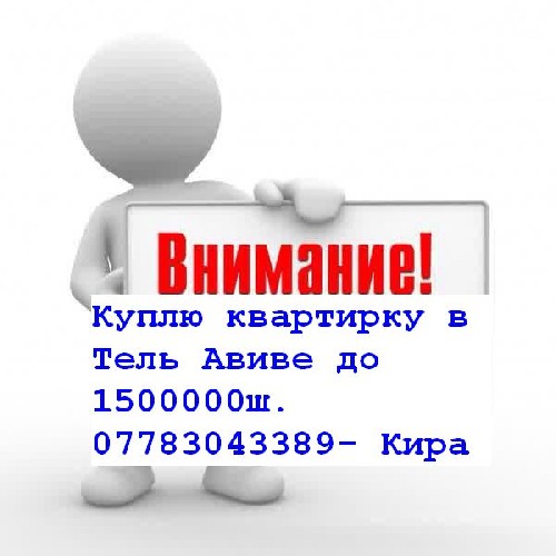Куплю тихую квартирку в Тель Авиве до 1500000ш.Можно через маклера 0544512073- Кира