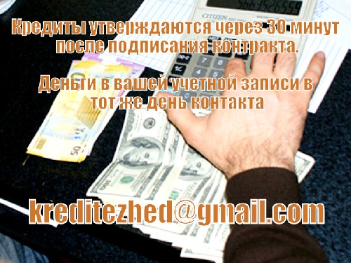 Вам нужен кредит, чтобы быстро оплачивать счета, и вам нужны деньги для личных или коммерческих целях? Мы обеспечиваем до $ 300,000 кредита без залога, стресса или хлопот. все, что требуется, чтобы получить кредит ваше удостоверение личности и подписать кредитный договор, мы на 100% надежны и правительство одобрило компанию выпустить 2% кредит Казахстан. , Кредит предоставляется на свой банковский счет на следующий день. Для получения дополнительной информации свяжитесь с нами через kreditezhed@gmail.com