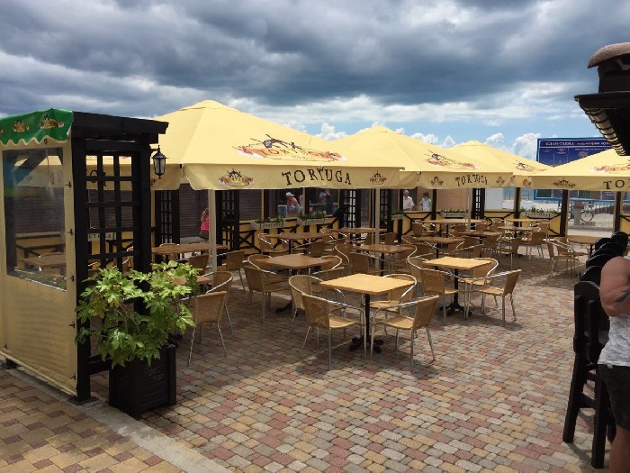 Уличные зонты для летних кафе – самый функциональный и удобный способ укрытия гостей от сюрпризов погоды. Зонт для уличного кафе защищает гостей от дождя, а в жаркий день даёт им прохладную тень.