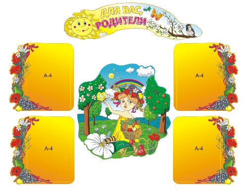 Уголки для родителей, Календари природы, Подставки для поделок из пластилина, Выставка детских рисунков, Меню, Уголки дежурных - красивые, яркие, надежные и безопасные стенды для оформления группы детского сада.