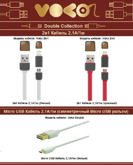 3. VOKO Double Collection (разъем 2в1, универсальный разъем для подключения iPhone и Android смартфонов и планшетов)